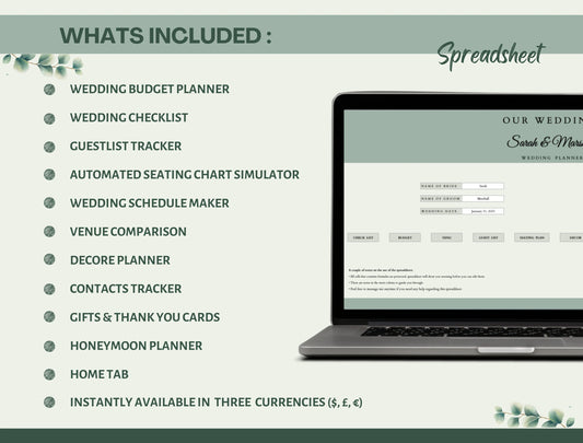 Digital Wedding Planner Spreadsheet